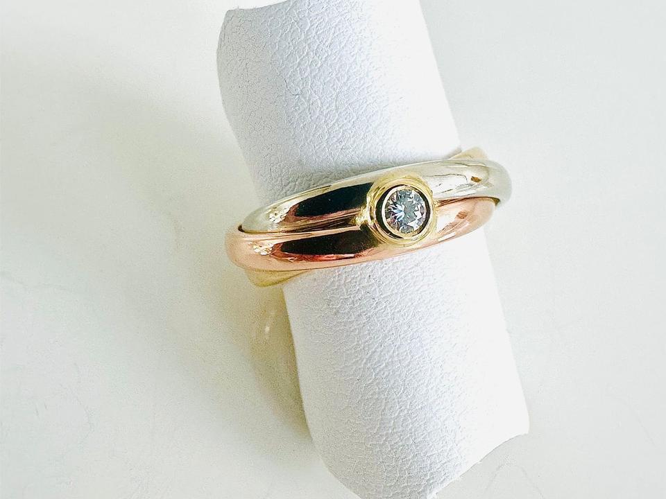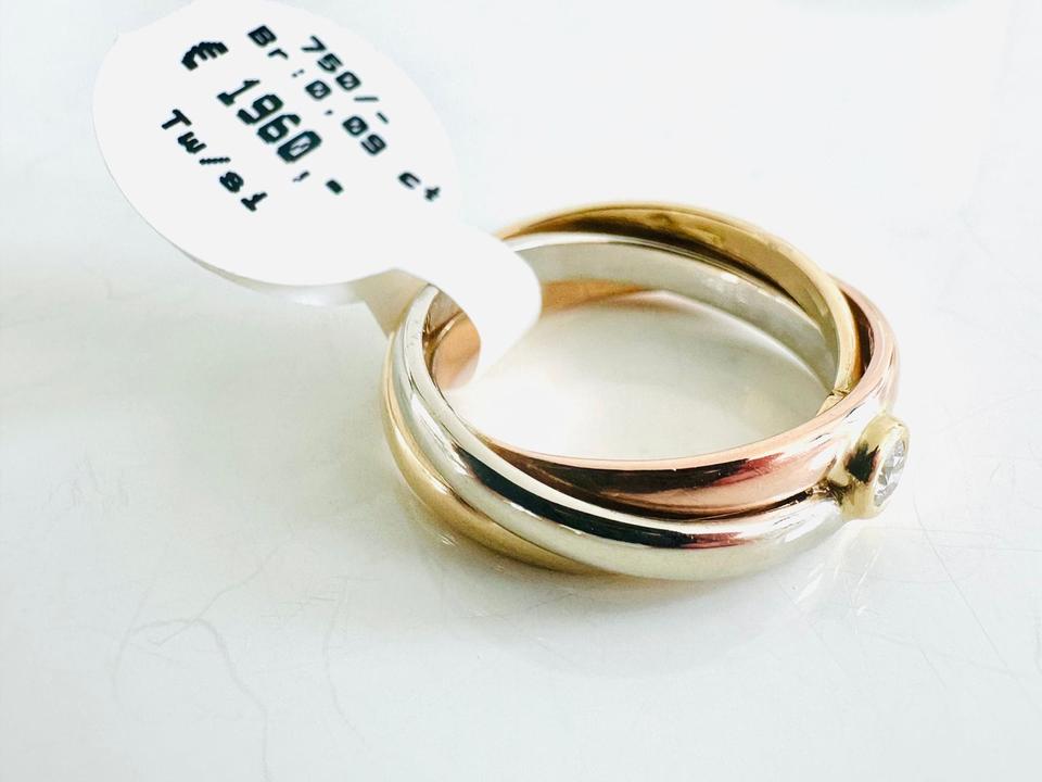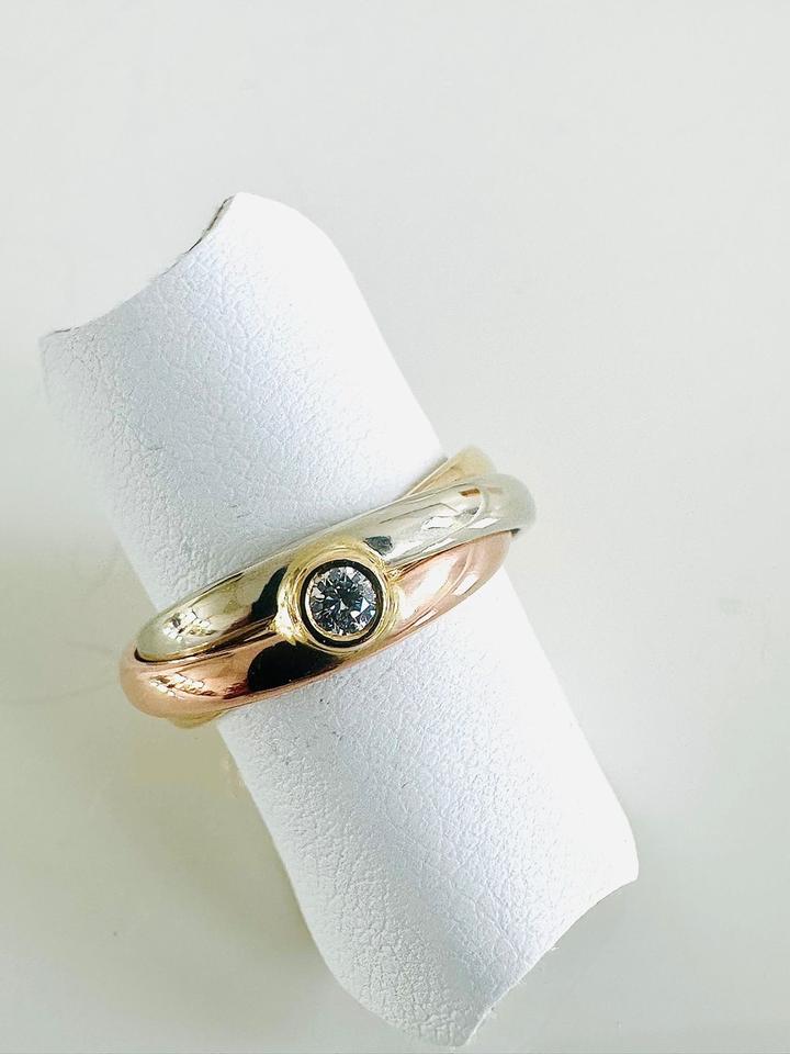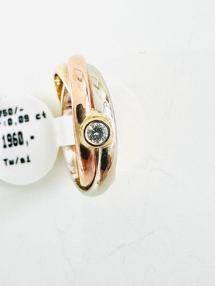 Ring 750/- Gold Dreifarbig mit Brillant 0,09 ct Tw/si