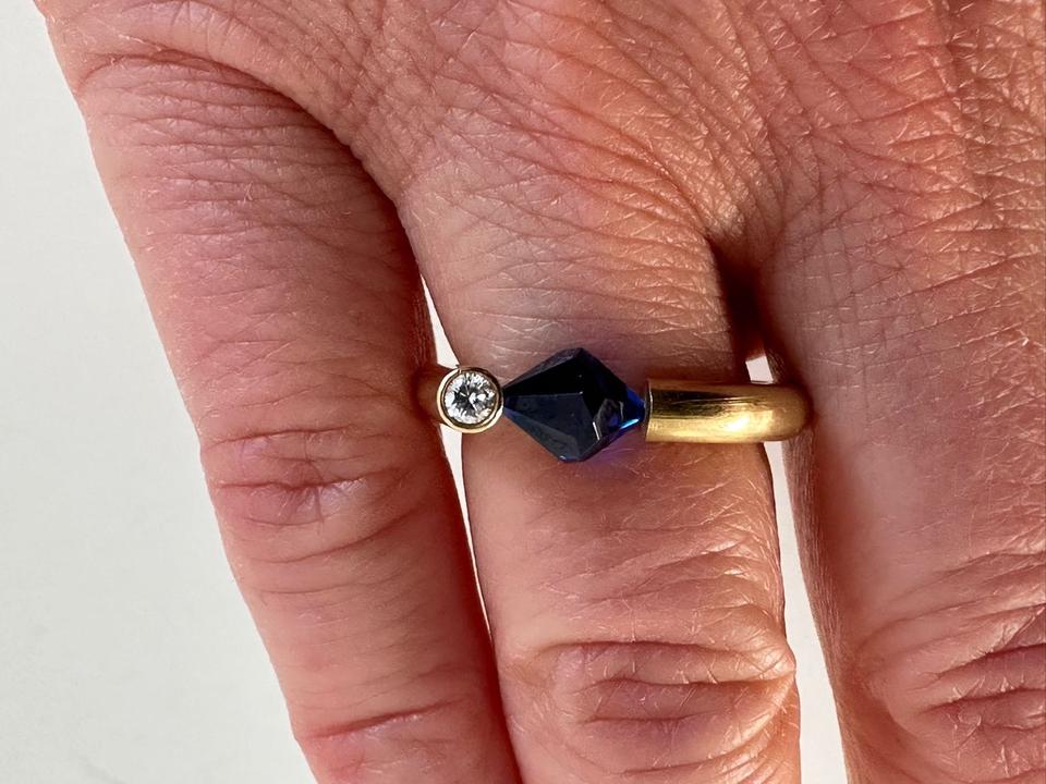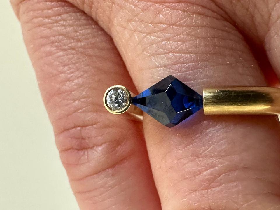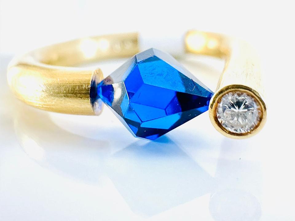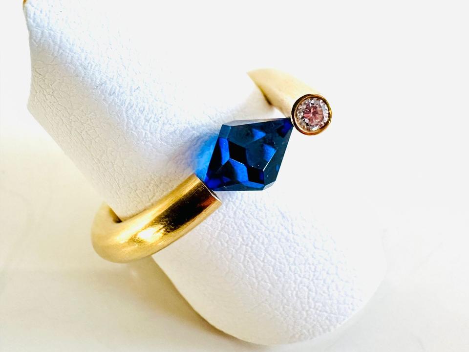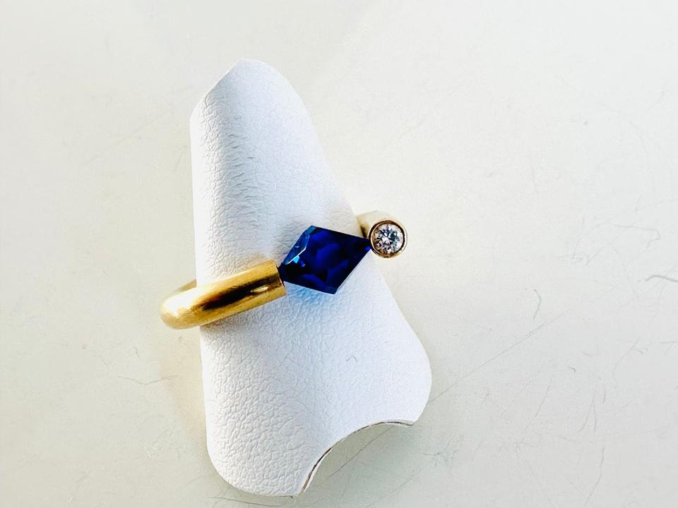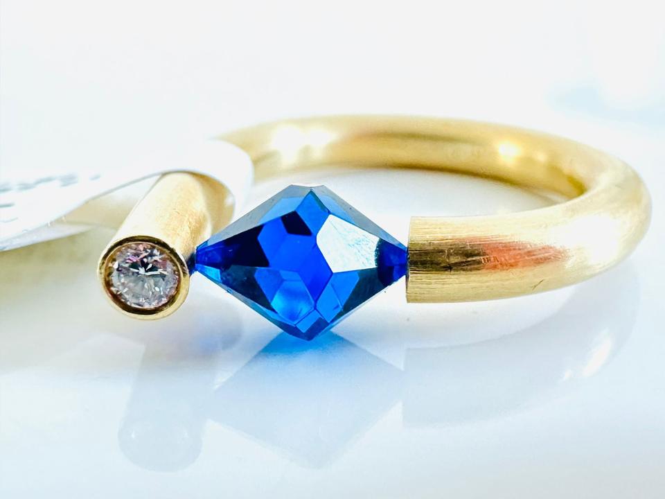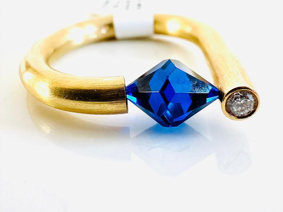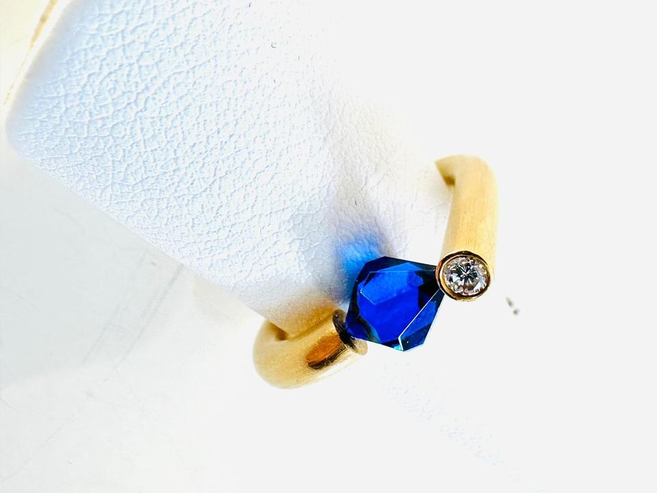 Ring 750/- Gold Handarbeit Unikat Mit blauem Stein und Brillant 0,07 ct Tw/vsi Ringweite 52 Gewicht 7,85 Gramm Juwelierpreis 1640,- Angebot 960,- Das ist ein Festpreis, Versand gegen Vorkasse möglich.