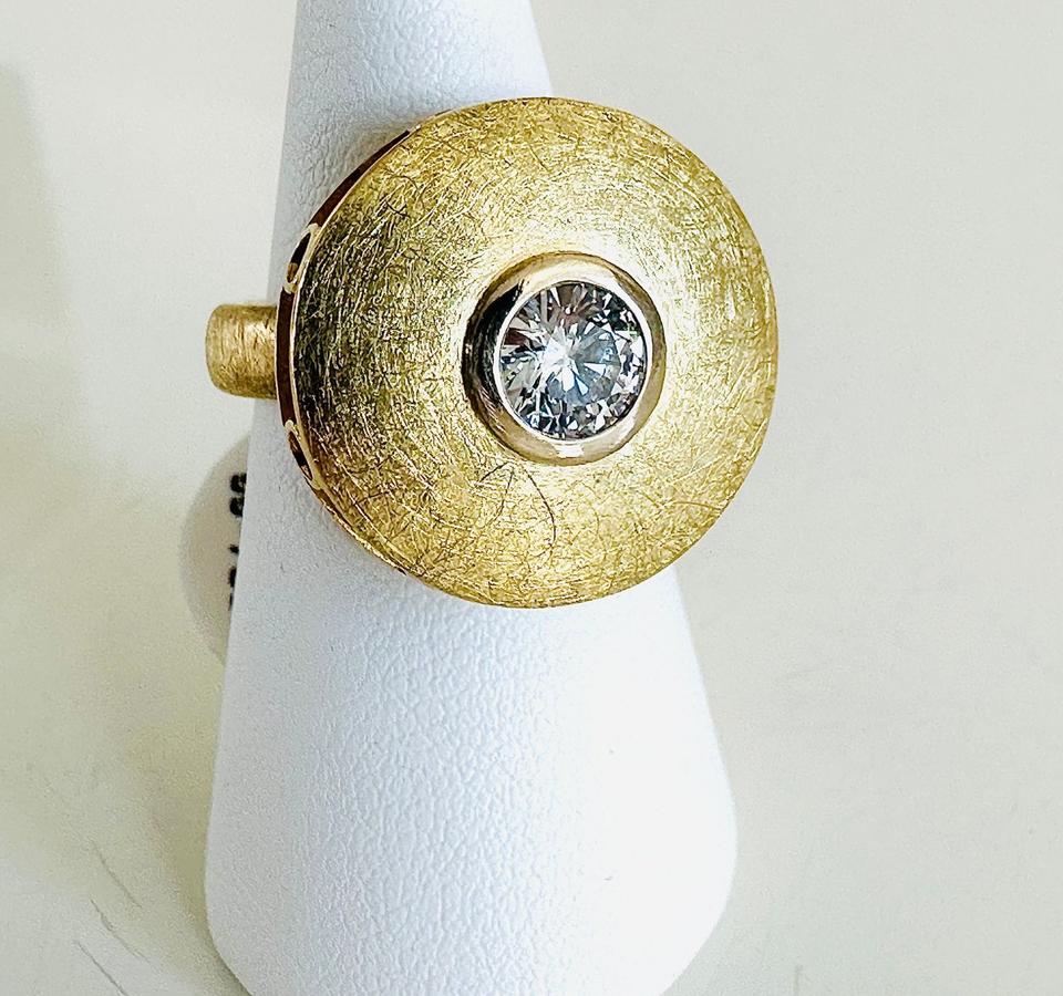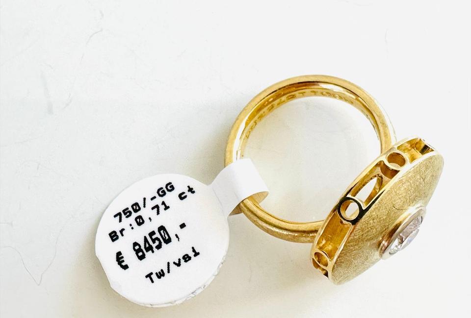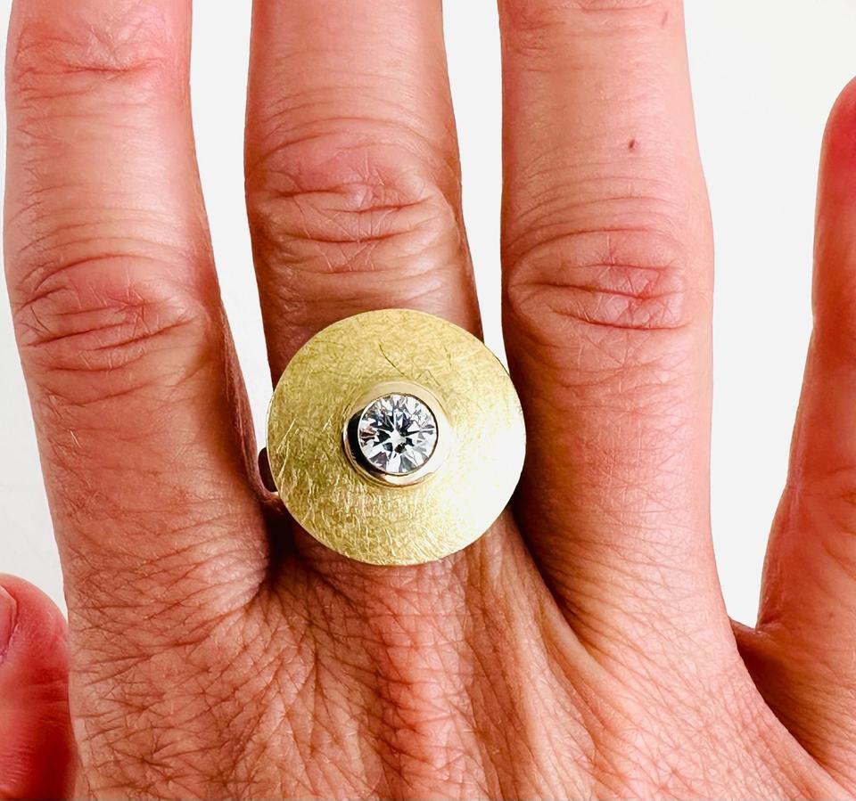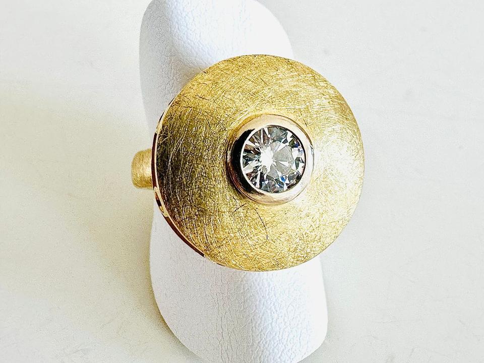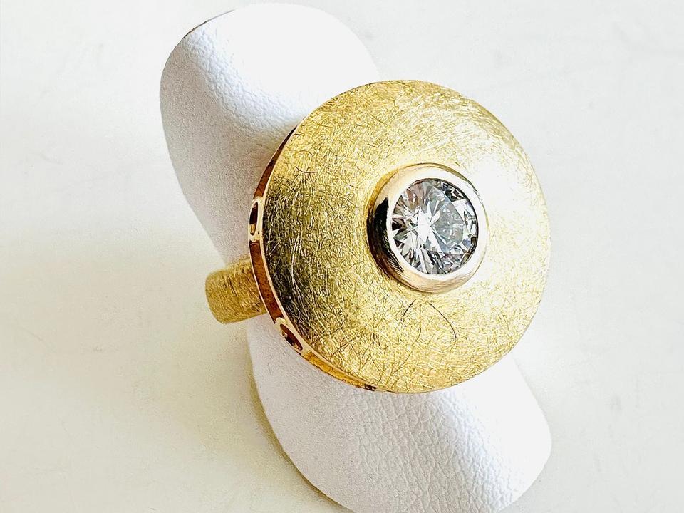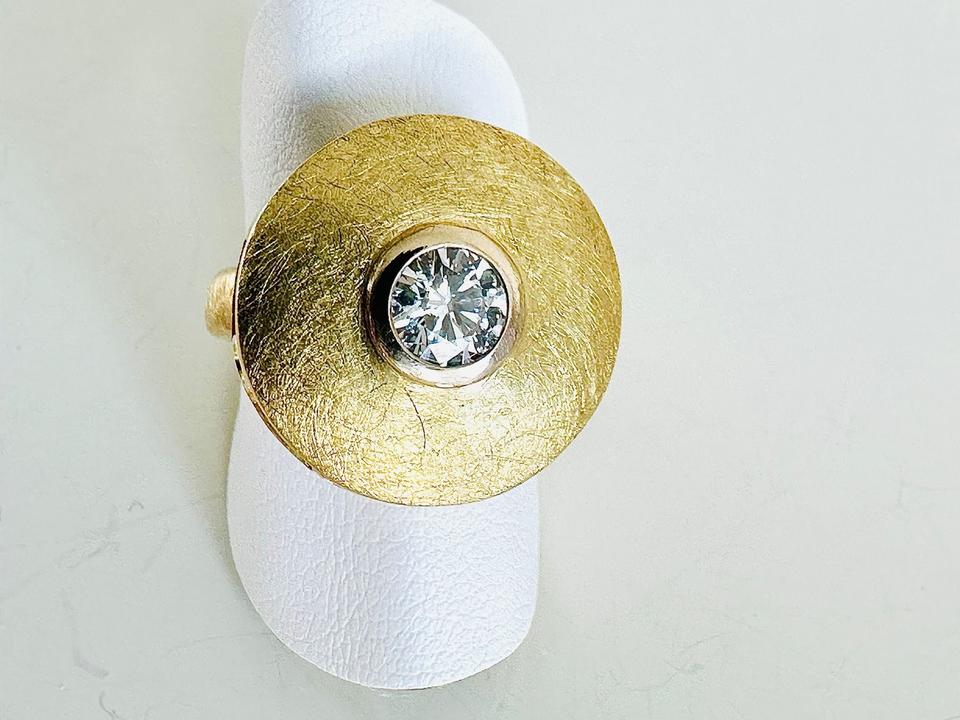 Ring 750/- Gold mit Brillant 0,71 ct Tw/vsi mit Expertise , Handarbeit