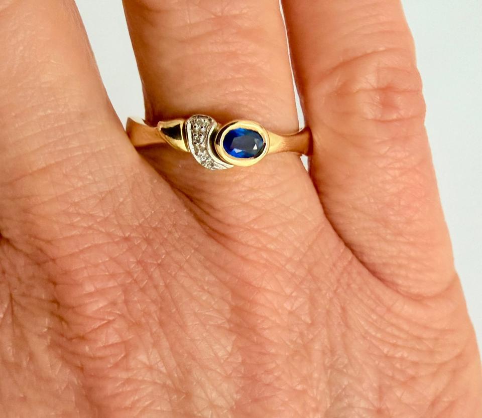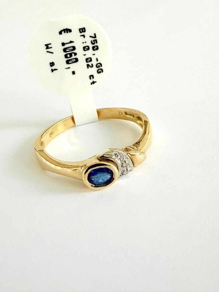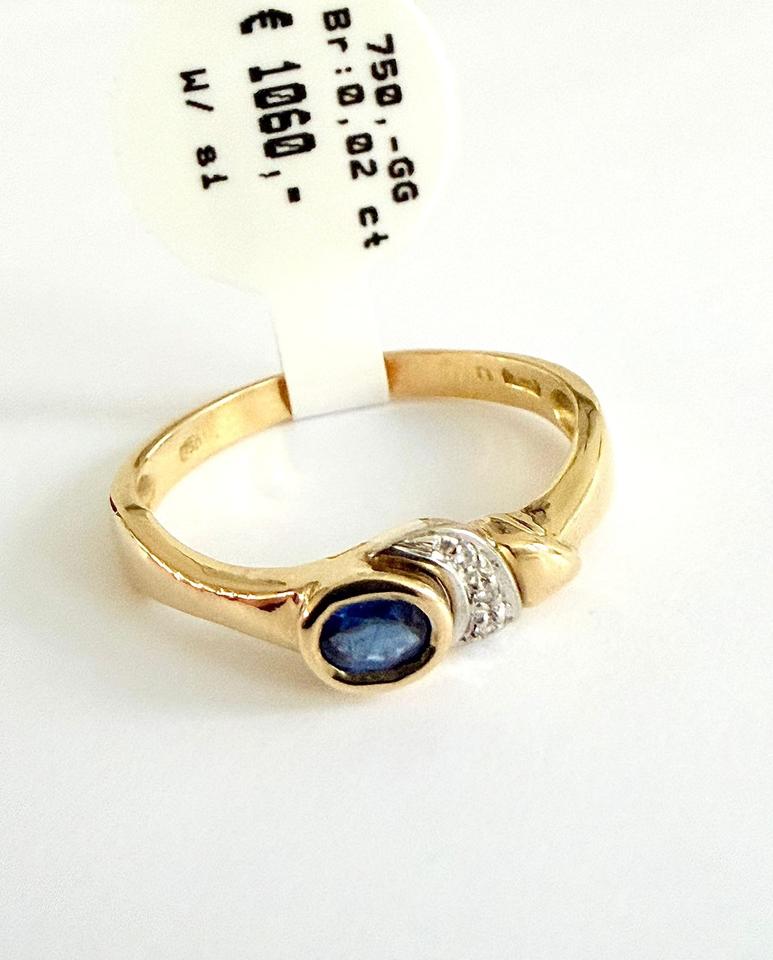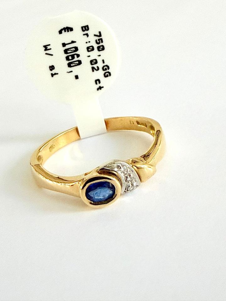 Ring 750/- Gold mit Saphir und Brillianten 0,02 ct
