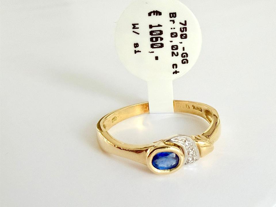 Ring 750/- Gold mit Saphir und Brillianten w/si Ringweite 61 Ringweite kann ggf geändert werden 3,32 Gramm Ringbreite 5,5 mm Juwelierpreis 1060,- Angebot 640,- Das ist ein Festpreis, Versand gegen Vorkasse möglich