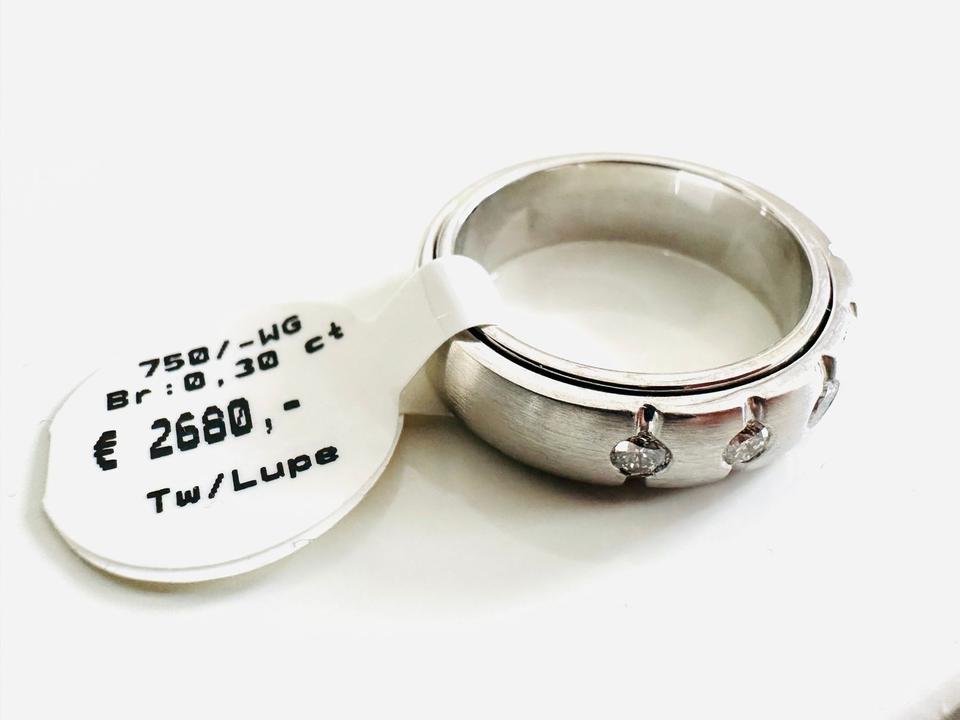 Ring 750/- Weißgold mit 5 Brillianten 0,30 ct Tw/lupenrein Ringweite 56 Ringbreite 5,8 mm Gewicht 11,15 Gramm Juwelierpreis 2680,- Angebot 1600,- Das ist ein Festpreis, Versand gegen Vorkasse möglich.